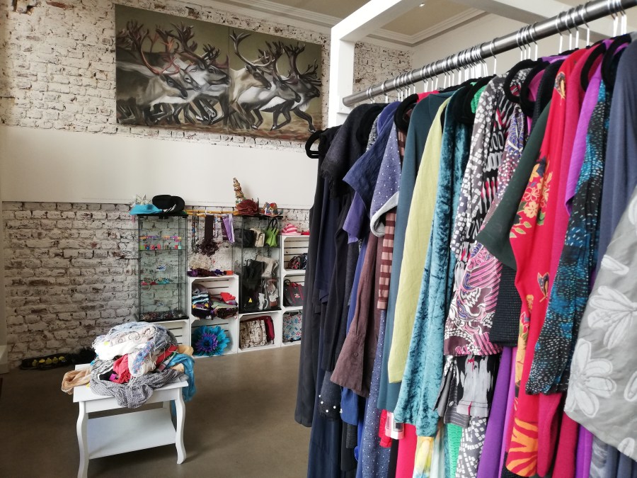 Da die Kleidung von Frauen in Kommission genommen wird, sind viele unterschiedliche Stile vertreten und jeder kann fündig werden. Es gibt also kein „Modediktat“ und eine bunt gemischte Kleiderauswahl. Außerdem achtet die Besitzerin bei der Auswahl der Klamotten besonders auf natürliche Fasern, wie z.B. Leinen.