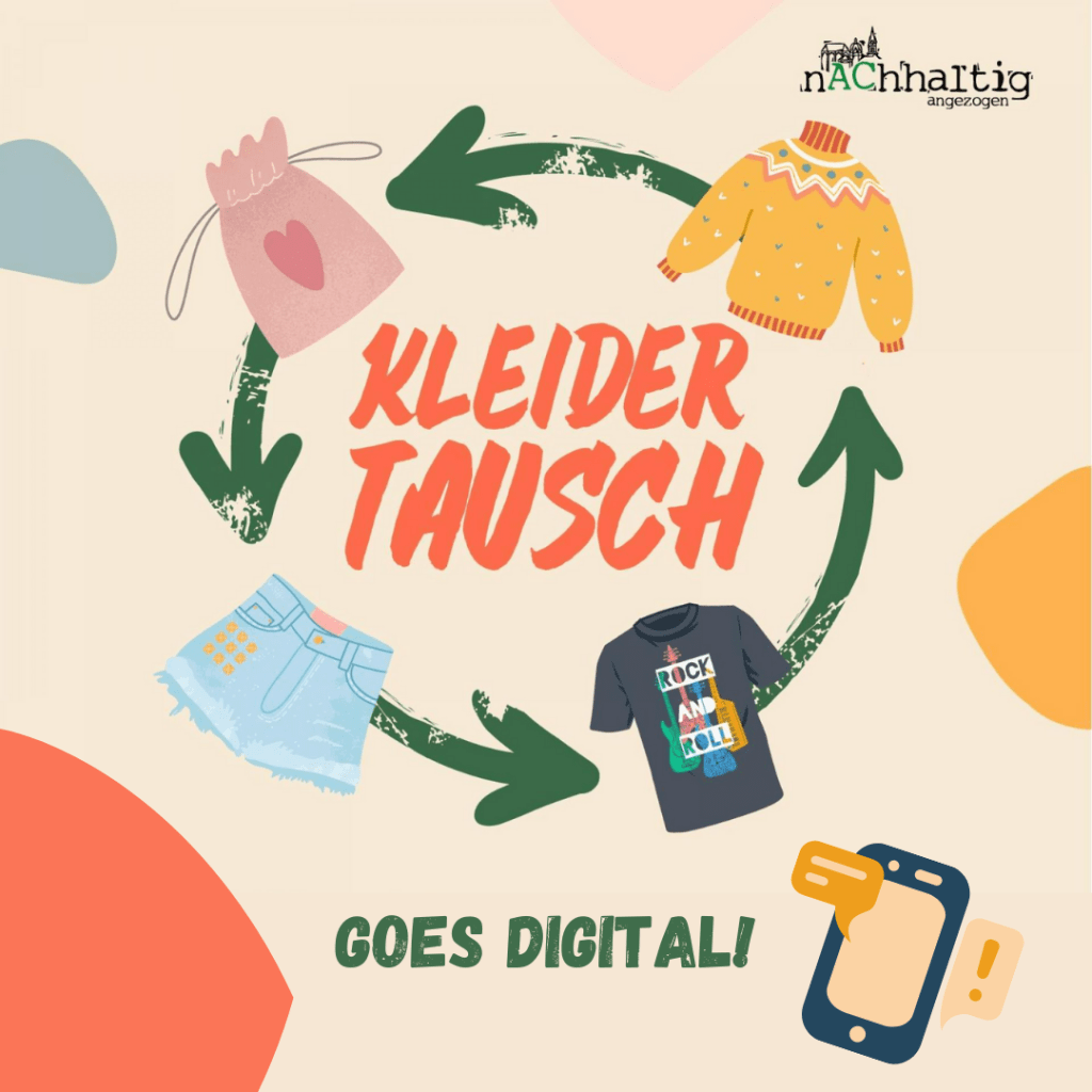 Du kannst an unseren Kleidertausch-Events in Präsenz nicht teilnehmen oder hast einfach Lust, flexibel und unkompliziert Klamotten zu tauschen? Dann ist unser digitaler Kleidertausch genau das Richtige für Dich! Hier kannst Du Kleidungsstücken ein verlängertes Leben schenken und damit einen Beitrag zu unserer Umwelt leisten.